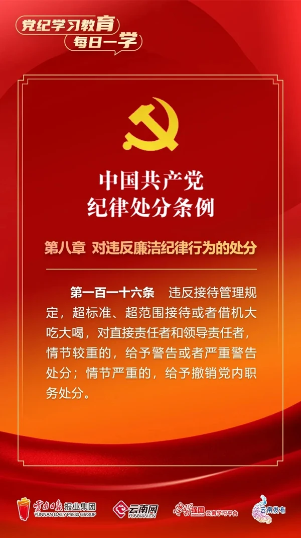 為深入學(xué)習(xí)貫徹落實(shí)習(xí)近平總書記關(guān)于黨紀(jì)學(xué)習(xí)教育的重要講話和重要指示精神,便于全省各級(jí)黨組織和廣大黨員、干部深入學(xué)習(xí)貫徹修訂后的《中國(guó)共產(chǎn)黨紀(jì)律處分條例》,云南網(wǎng)聯(lián)合“學(xué)習(xí)強(qiáng)國(guó)”云南學(xué)習(xí)平臺(tái)、云南發(fā)布共同策劃推出“黨紀(jì)學(xué)習(xí)教育•每日一學(xué)”專欄,營(yíng)造全員參與、人人學(xué)紀(jì)的濃厚氛圍。今天,我們推出第55期,一起來學(xué)習(xí)。