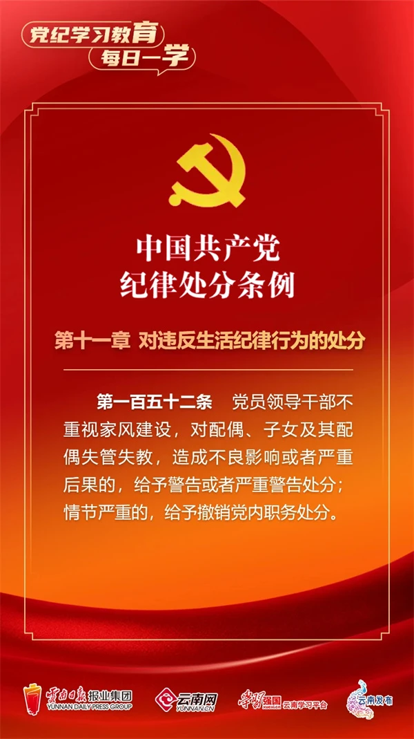 為深入學(xué)習(xí)貫徹落實習(xí)近平總書記關(guān)于黨紀(jì)學(xué)習(xí)教育的重要講話和重要指示精神,便于全省各級黨組織和廣大黨員、干部深入學(xué)習(xí)貫徹修訂后的《中國共產(chǎn)黨紀(jì)律處分條例》,云南網(wǎng)聯(lián)合“學(xué)習(xí)強(qiáng)國”云南學(xué)習(xí)平臺、云南發(fā)布共同策劃推出“黨紀(jì)學(xué)習(xí)教育•每日一學(xué)”專欄,營造全員參與、人人學(xué)紀(jì)的濃厚氛圍。今天,我們推出第72期,一起來學(xué)習(xí)。