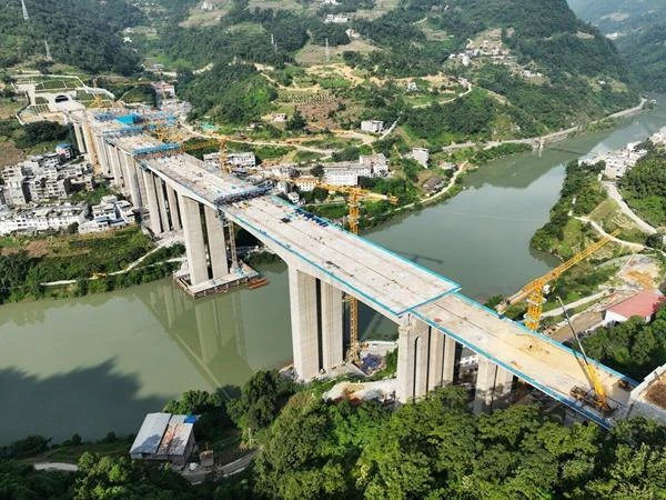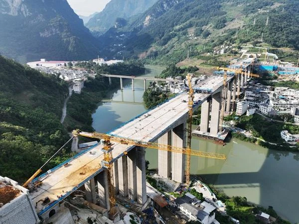 渝昆高鐵全長約700公里,其中云南段長388.6公里,設計時速350公里,是云南省內首條時速達350公里的高速鐵路,全線建成通車后,重慶到昆明的行車時間將大幅壓縮,對構建新發(fā)展格局、促進沿線地區(qū)經濟社會高質量發(fā)展具有重要意義。隨著鹽津南站白水江特大橋勝利合龍,渝昆高鐵橋梁施工完成超96%。