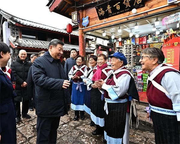 離開時,許多居民和游客圍攏過來為總書記送行。習近平激勵大家說,麗江有美麗風光,有特色文化,有很高知名度,一定能走出一條持續(xù)健康的文旅發(fā)展之路。他祝愿麗江人民的生活如同納西族的“和”姓一樣,幸福安康、和和美美。