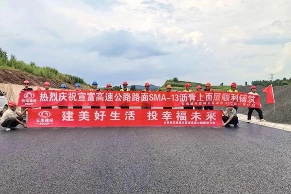 8月8日,彌玉高速公路(華寧段)瀝青上面層試驗(yàn)段順利完成鋪筑。